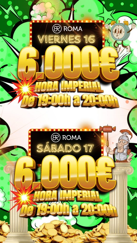 Prima progresiva de 500€ durante todo el día | Todos los días HORA ROMA – 10 partidas con premio garantizado de 500€